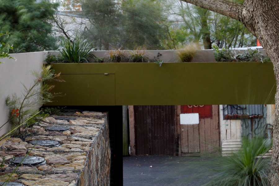 A medium sized terrace in the inner city, the design of the Recycled House focuses on reduction of the household’s material use, off-site energy and water consumption. This is achieved through implementation of sustainable strategies including solar panels, a solar-hydronic floor heating system, the collection of rainwater and the reuse of grey water in the home. Due to site limitations, the capacity of the site to store rainwater has been limited to 6000L. The grey water produced in the dwelling is cleaned by a reed-bed and reused for washing clothes, flushing toilets and watering the garden. Power consumption is reduced through the use of a 3kW Photovoltaic system, energy efficient light fixtures and fittings as well as a well-insulated concrete floor which provides high levels of thermal mass. The floor stabilises indoor temperatures throughout the year and reduces reliance upon electrically powered heating and cooling methods.